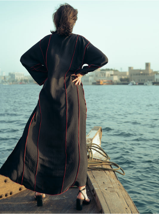 Thread Abaya - Black & Red