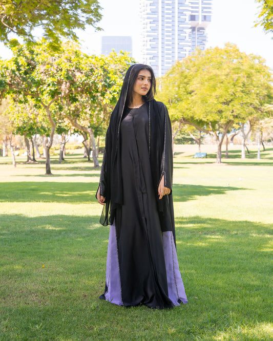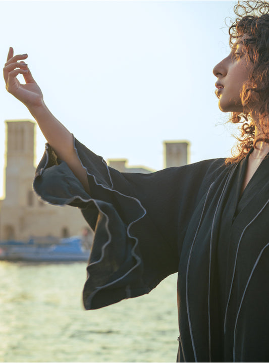 Thread Flare Abaya- Black & Grey